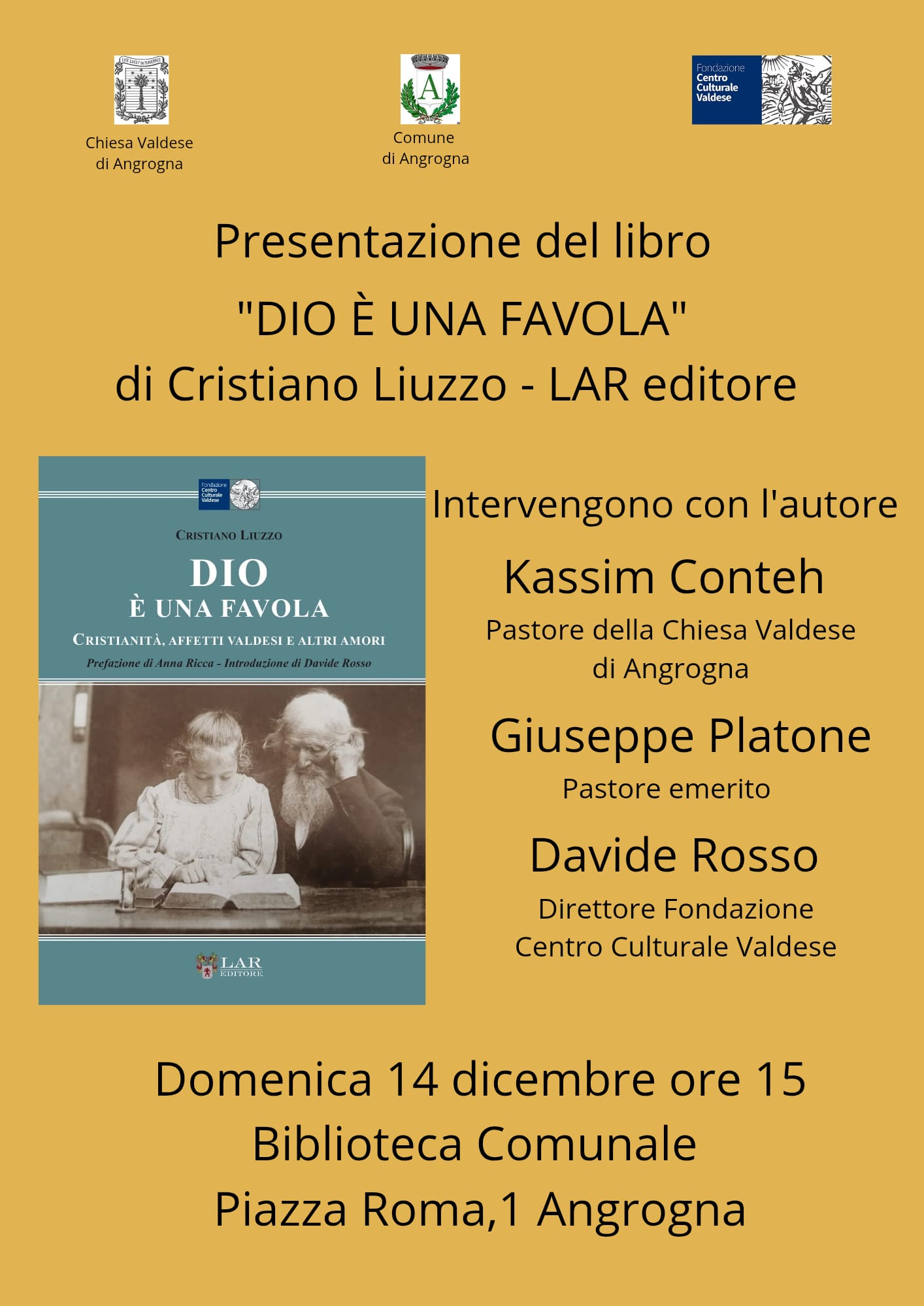 14 DICEMBRE 2025 ORE 15 – PRESENTAZIONE LIBRO – “DIO E’ UNA FAVOLA” DI CRISTIANO LIUZZO LAR edizioni